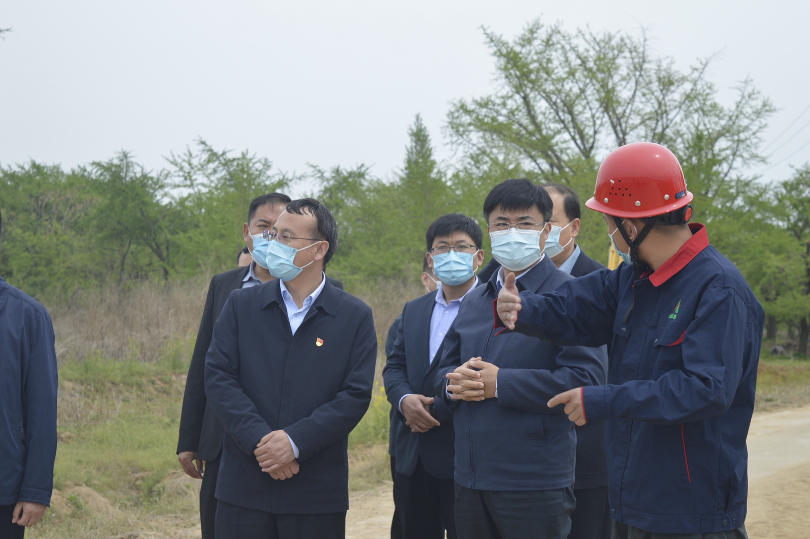 4月14日,临沂郯城县县委书记王立军一行到山东水总第三分公司承建的重坊橡胶坝工程视察指导工作。通过项目经理王庆捷的工作汇报,王立军详细了解了项目部疫情防控、复工复产情况以及当前工程面临的重点难点问题。