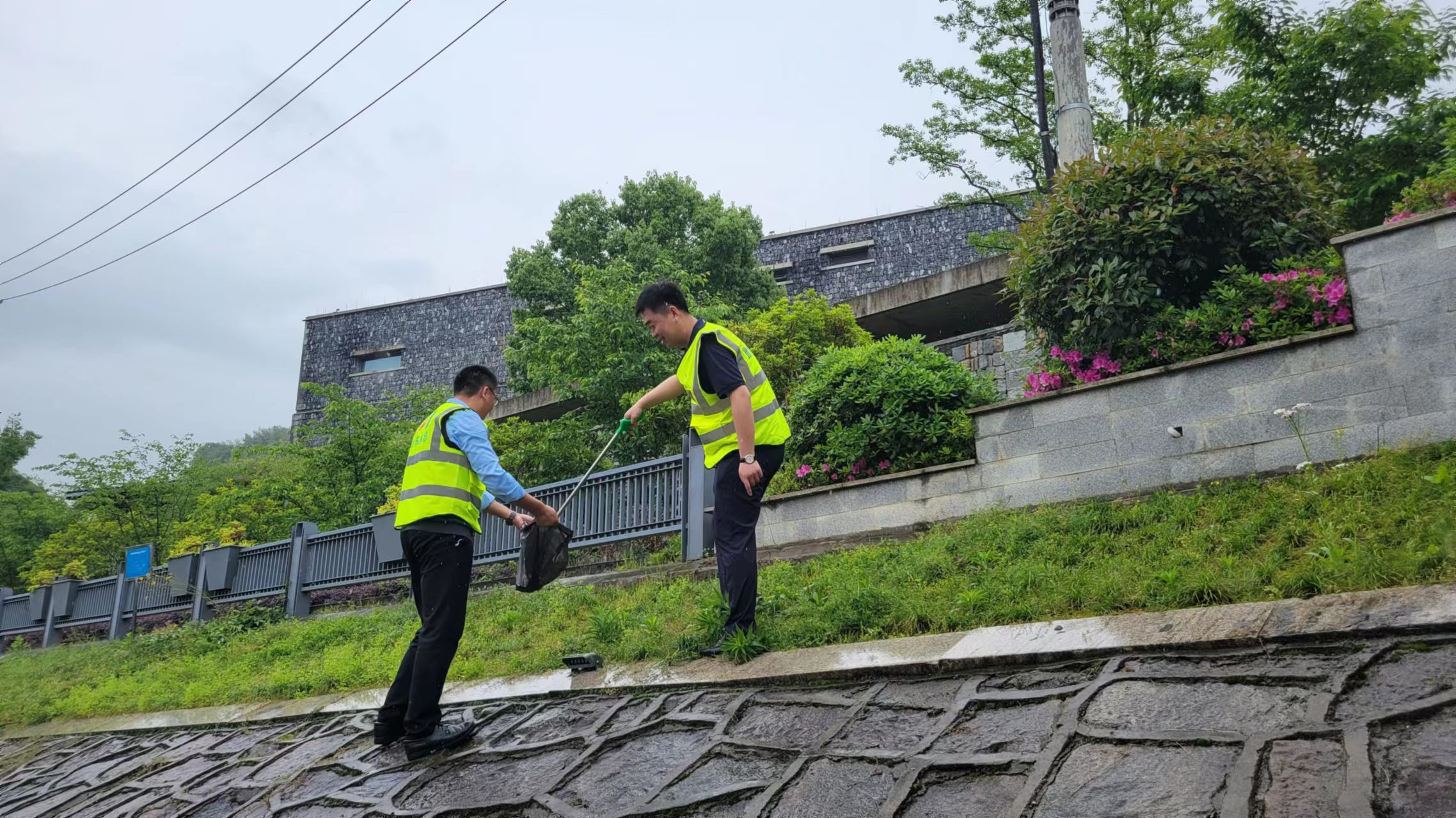 锦溪两岸,身着志愿服的突击队员们纷纷手持垃圾袋、火钳等工具,对护河绿道和绿化带中的垃圾、烟头及杂物进行清理。经过大家一上午的忙碌,锦溪两岸焕然一新。
