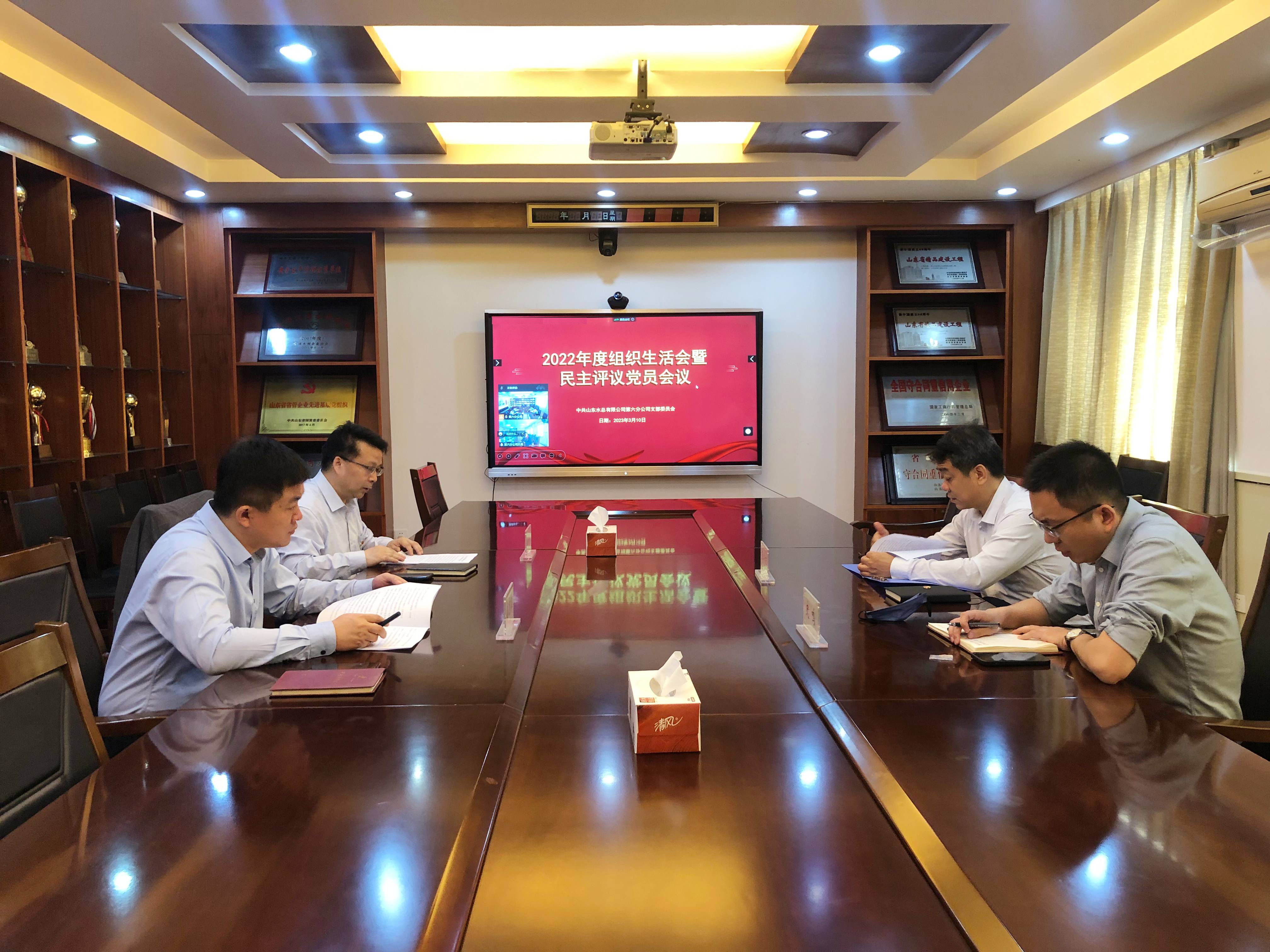 3月10日上午,第六分公司党支部召开2022年度组织生活会暨民主评议党员大会,支部全体党员参加会议。会议由党支部书记曲兴伟主持,公司党委委员、副总经理李光市,投资经营部副部长史鸣到会指导。