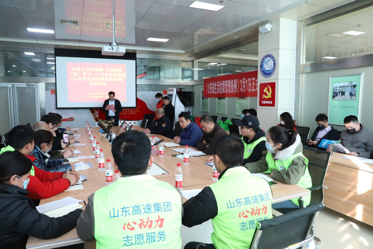 “学雷锋日”来临之际,正值《山东省生活垃圾管理条例》开始实施。为弘扬“奉献、友爱、互助、进步”的志愿服务精神,3月1日,山东水总志愿服务队来到驻地社区文化东路街道办事处持续深化“双报到”志愿服务活动,通过开展“垃圾分类 我带头我分类”主题志愿服务,扎实推动与驻地社区共驻共建、互联互动。