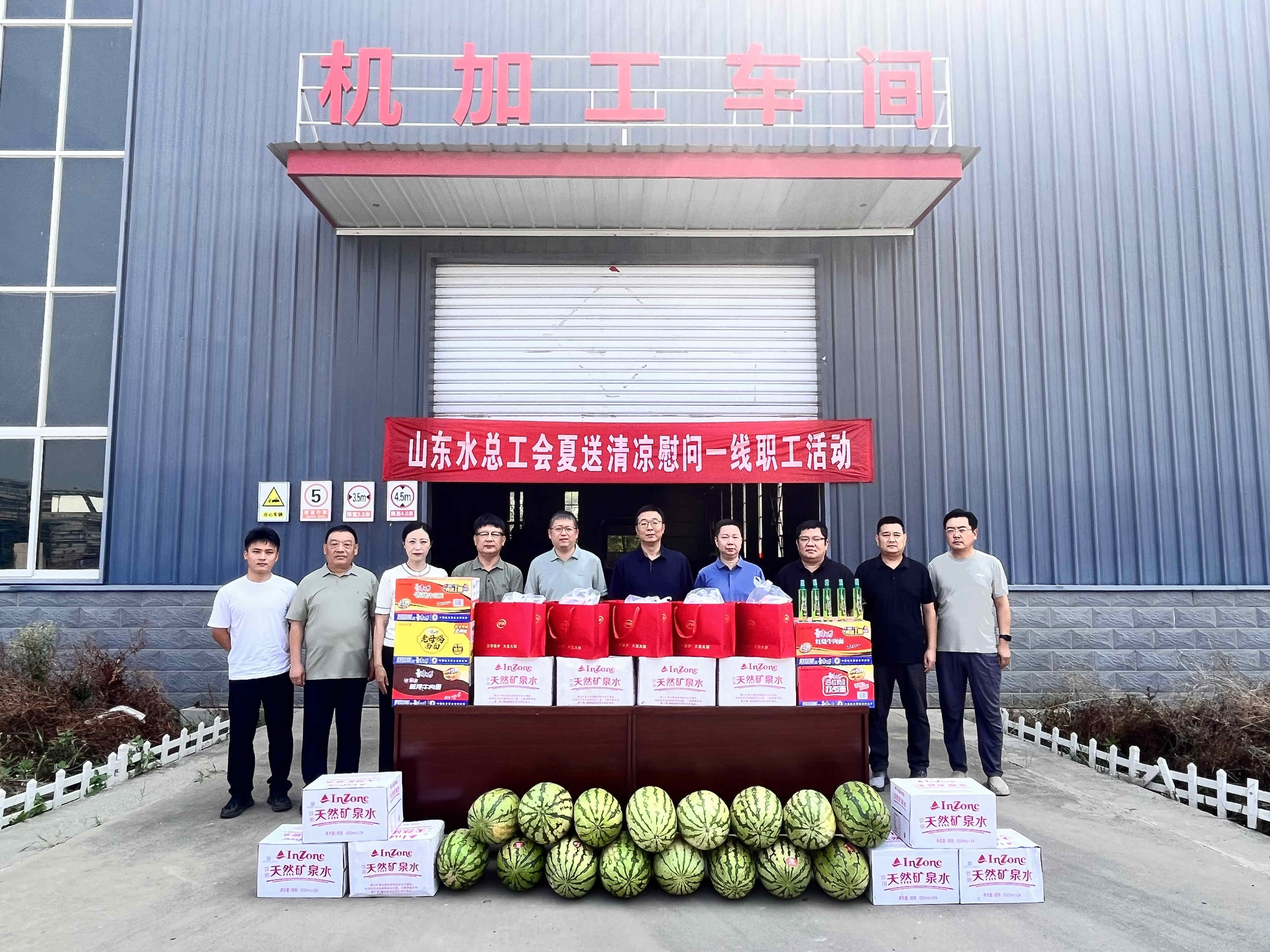 8月5日,山东水总总会计师杨利军一行到水工机械公司生产车间开展“夏送清凉”慰问活动,水工机械公司党支部书记、董事、总经理王传波等陪同。